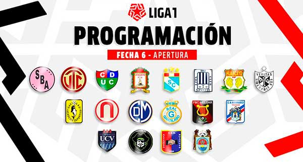 La programación completa de la fecha 6 del Torneo Apertura por la Liga 1 es la siguiente: